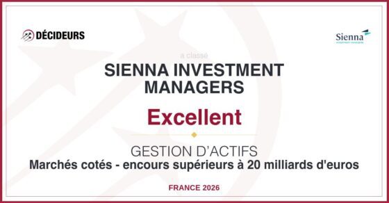 Sienna Investment Managers confirms its position as a leading player in 2026, receiving three major distinctions awarded by Décideurs Magazine – Leaders League.